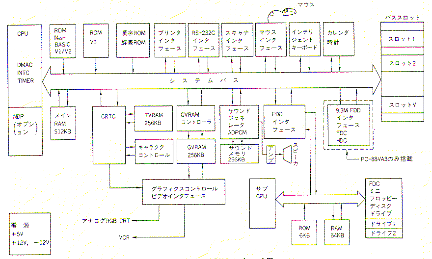 ハード的には、V30をコアとし、DMAコントローラ・割り込みコントローラ・タイマ・クロックジェネレータ等の周辺回路を内蔵していて、V50と同様な構成になっています。